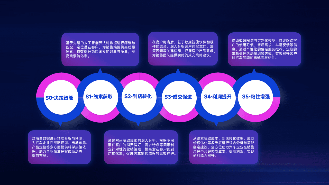 通过拓宽潜在客户来源、、优化线索分配并提高到店转化率,,,,以增强销售效率。。。。同时,,利用线索数据不断优化分析模型,,,有效提升转化率,,,,扩大营销影响力。。